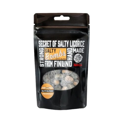 Hårda salta karameller från Namitupa. Smak, salmiaksalt + björnbär